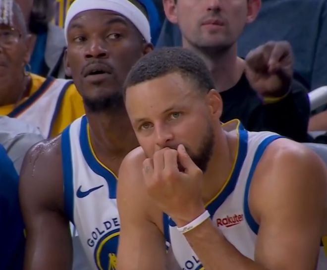 5961萬(wàn)聯(lián)盟第一高薪有理!庫(kù)里15分鐘14分打卡 場(chǎng)下啃指甲觀賽