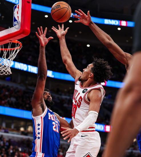 恩比德末節(jié)5中0馬克西空砍39分,吉迪29+15+12,公牛24分逆轉(zhuǎn)76人